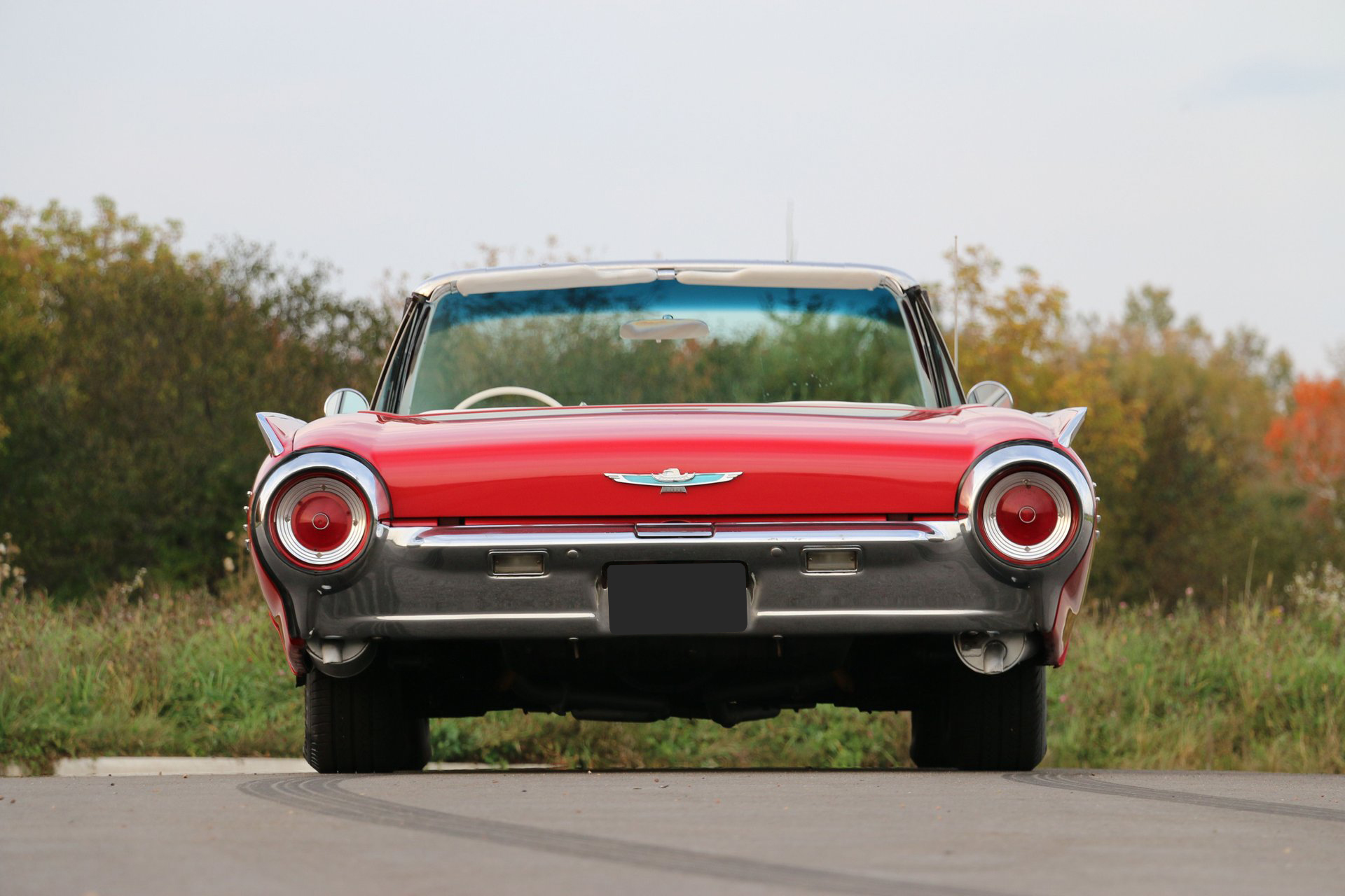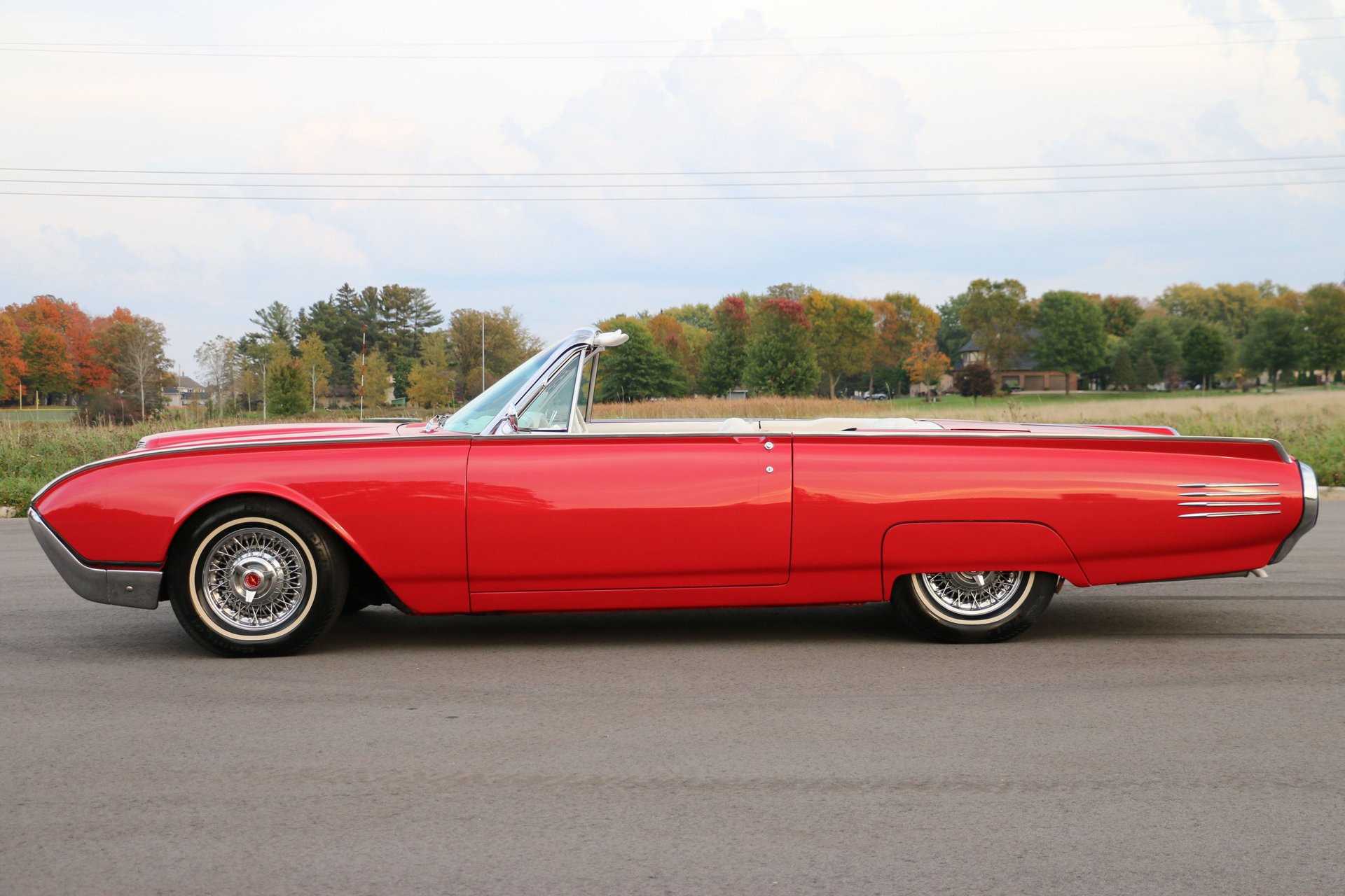 Here is a beautiful 1961 Ford Thunderbird Convertible. Factory 390 V8 with automatic transmission. Very nice paint with excellent white and red interior and white power top. Equipped with power steering, power brakes, power windows, updated digital AM/FM radio and Kelsey Hayes spoke wheels. The power top works perfectly and the car runs and drives great!