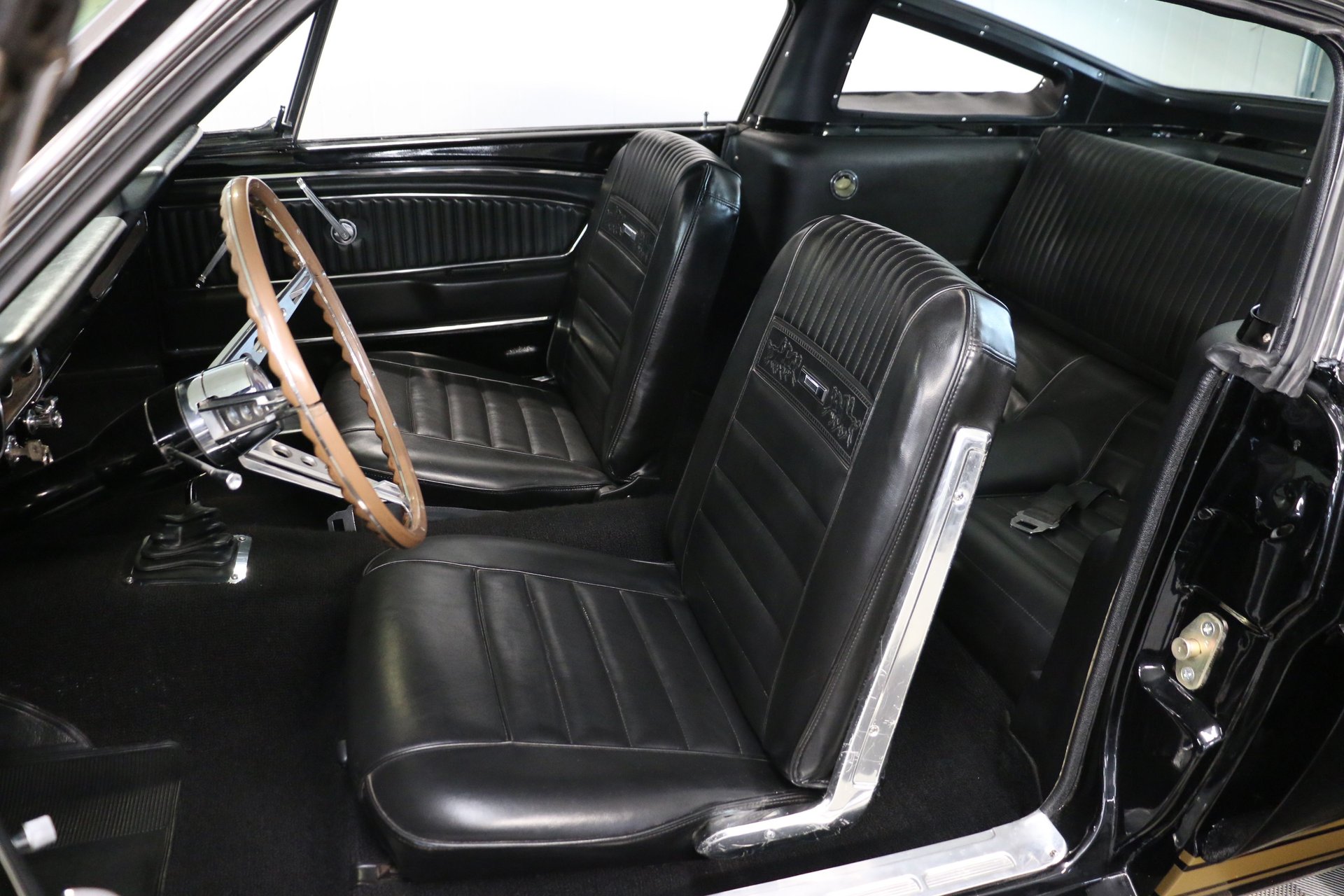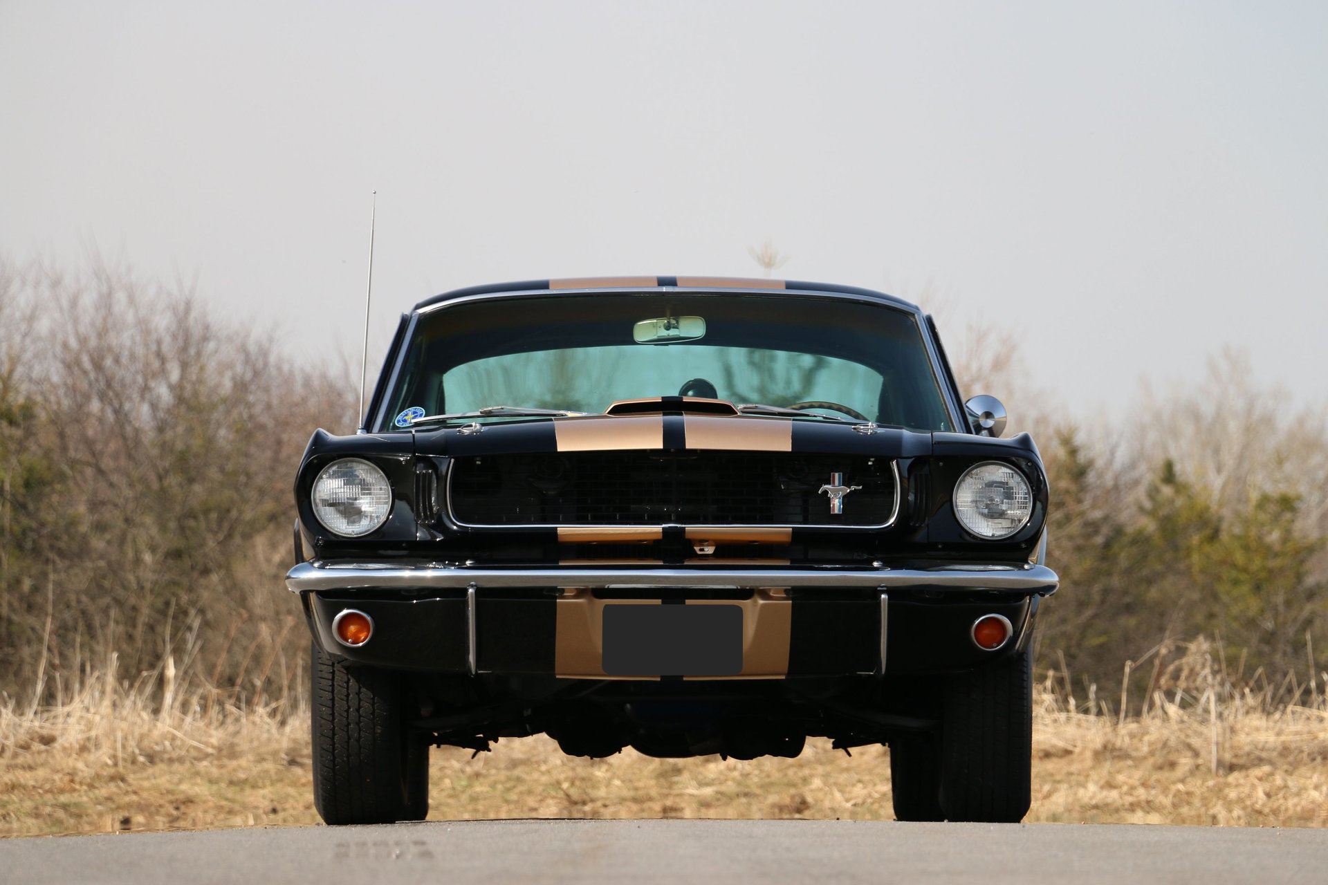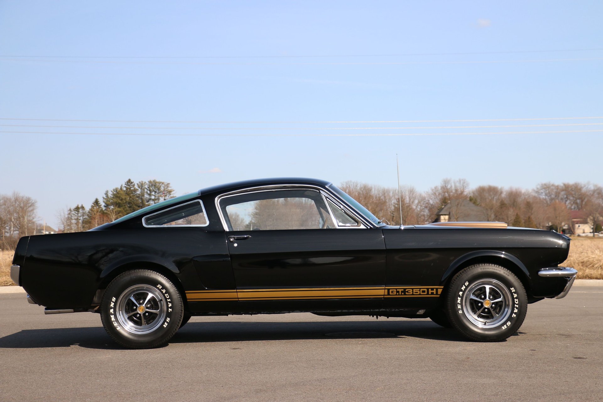 Here is a gorgeous 1966 Ford Mustang Fastback. This C-code 4 Speed Fastback has been tastefully created into a Shelby Hertz GT350 Tribute. Beautiful Raven Black paint with painted gold stripes. Healthy 289 V8 topped with a Holley 4 barrel carb, Edelbrock Performer RPM aluminum intake, full length Hooker headers and turbo mufflers. This San Jose built Mustang has been very well cared for. Equipped with a Shelby style hood, side vent scoops, plexiglass C-pillar windows, Shelby gas cap, Hertz center caps, 9,000 RPM Cobra tachometer, wooden Cobra steering wheel, correct export brace, Monte Carlo bar and Shelby valve covers. The Pony interior is in excellent condition with new digital stereo and remote driver mirror. 14'' Magnum 500 wheels with radial tires. Great looking, excellent running and a blast to drive!