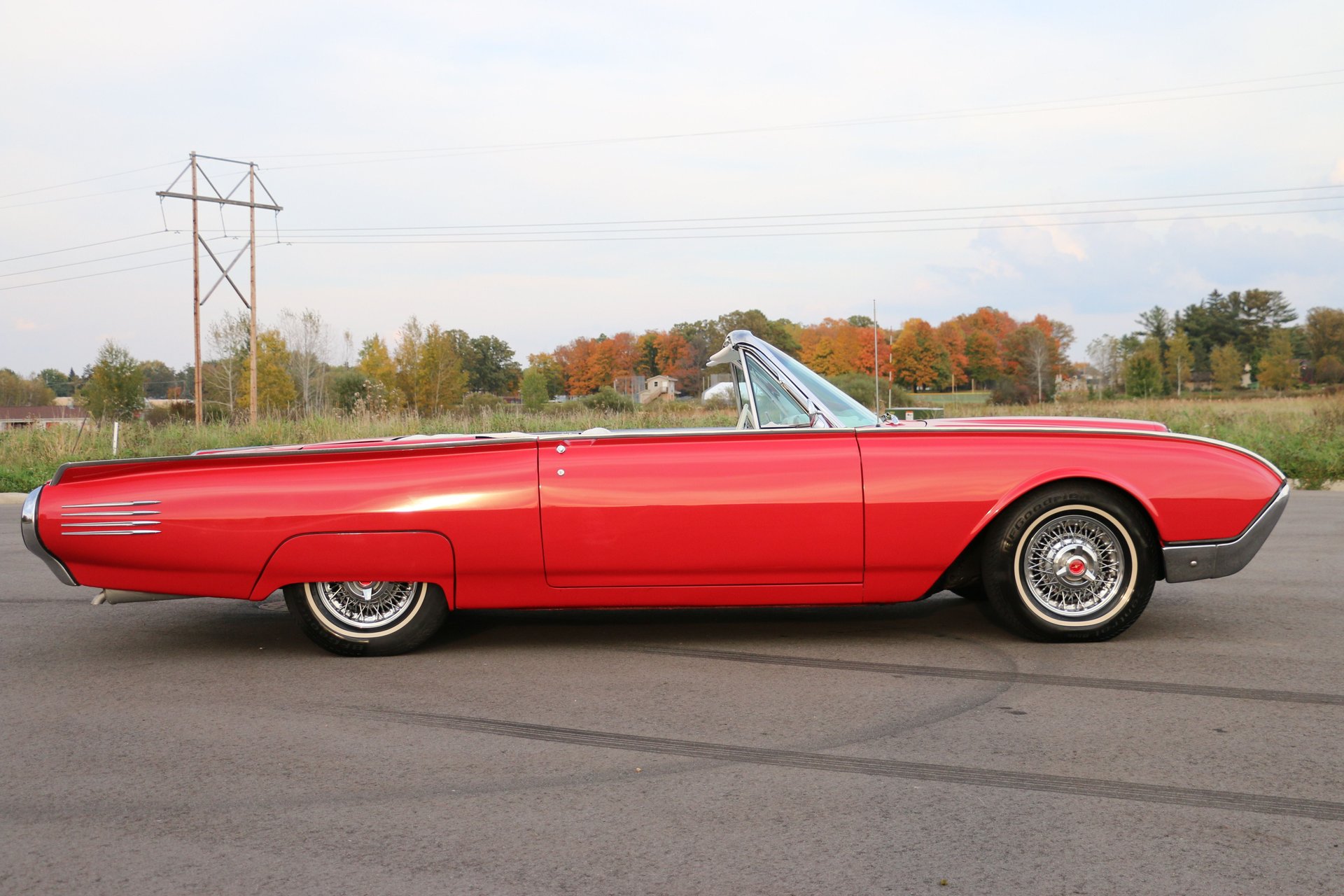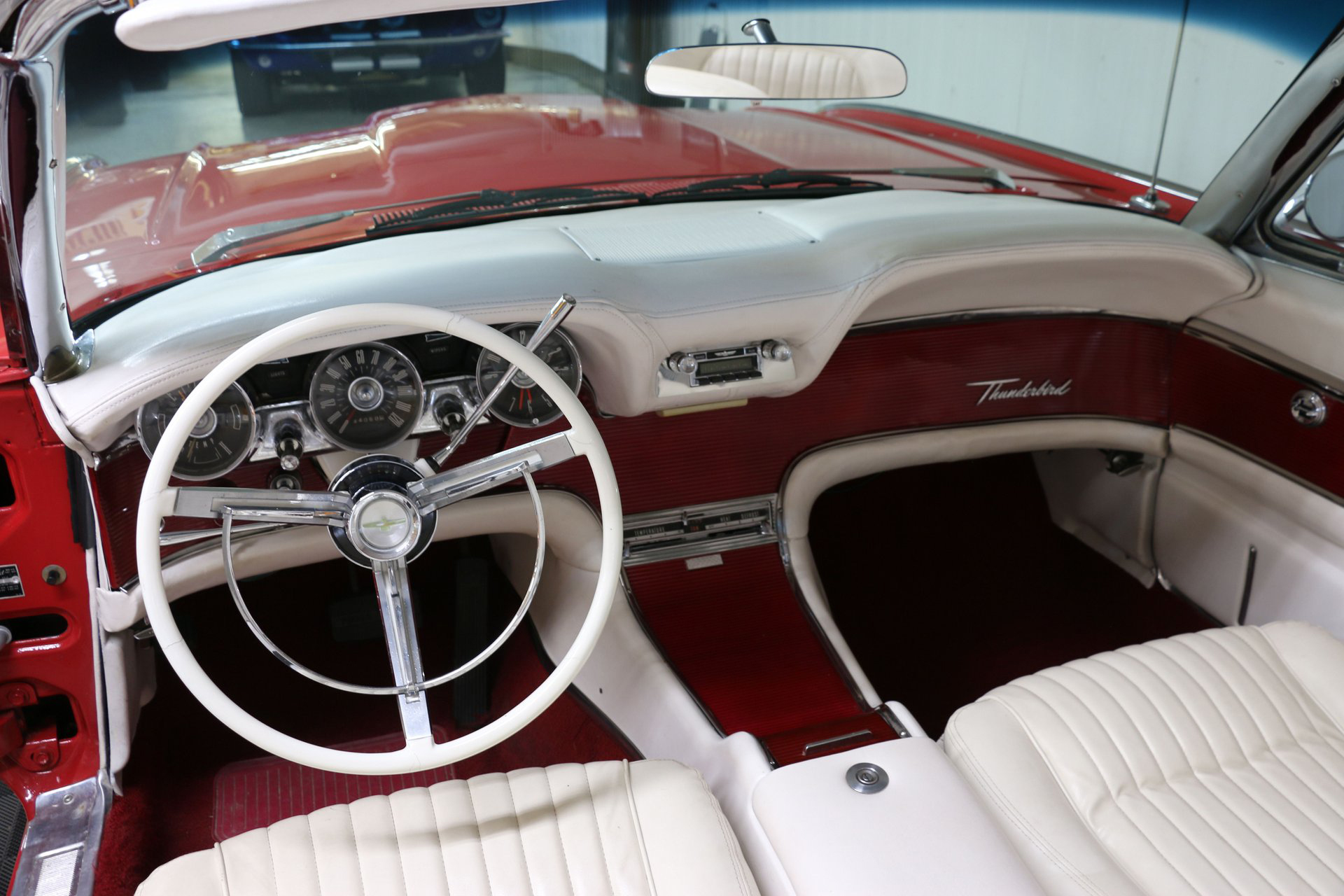 Here is a beautiful 1961 Ford Thunderbird Convertible. Factory 390 V8 with automatic transmission. Very nice paint with excellent white and red interior and white power top. Equipped with power steering, power brakes, power windows, updated digital AM/FM radio and Kelsey Hayes spoke wheels. The power top works perfectly and the car runs and drives great!