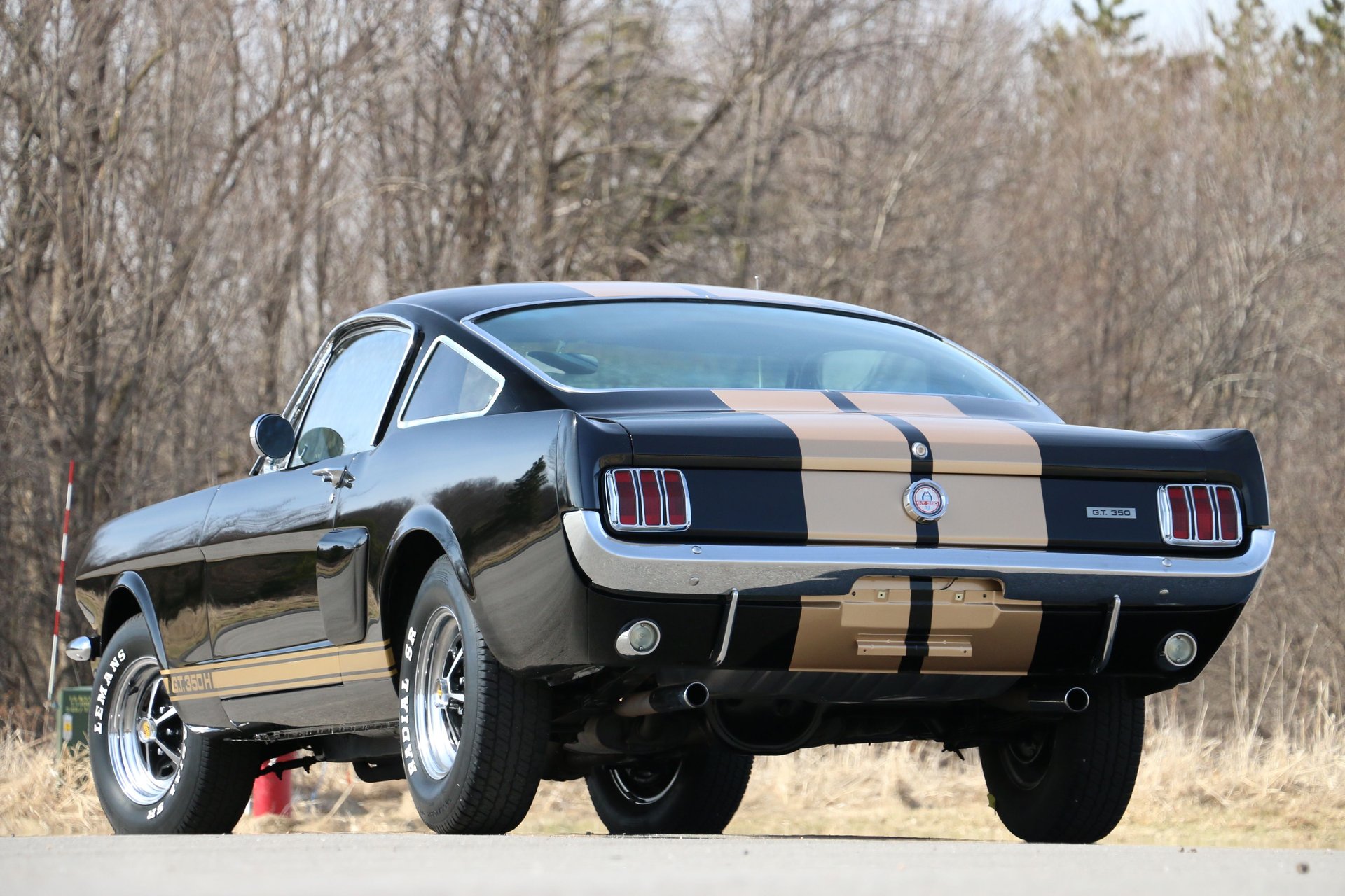 Here is a gorgeous 1966 Ford Mustang Fastback. This C-code 4 Speed Fastback has been tastefully created into a Shelby Hertz GT350 Tribute. Beautiful Raven Black paint with painted gold stripes. Healthy 289 V8 topped with a Holley 4 barrel carb, Edelbrock Performer RPM aluminum intake, full length Hooker headers and turbo mufflers. This San Jose built Mustang has been very well cared for. Equipped with a Shelby style hood, side vent scoops, plexiglass C-pillar windows, Shelby gas cap, Hertz center caps, 9,000 RPM Cobra tachometer, wooden Cobra steering wheel, correct export brace, Monte Carlo bar and Shelby valve covers. The Pony interior is in excellent condition with new digital stereo and remote driver mirror. 14'' Magnum 500 wheels with radial tires. Great looking, excellent running and a blast to drive!