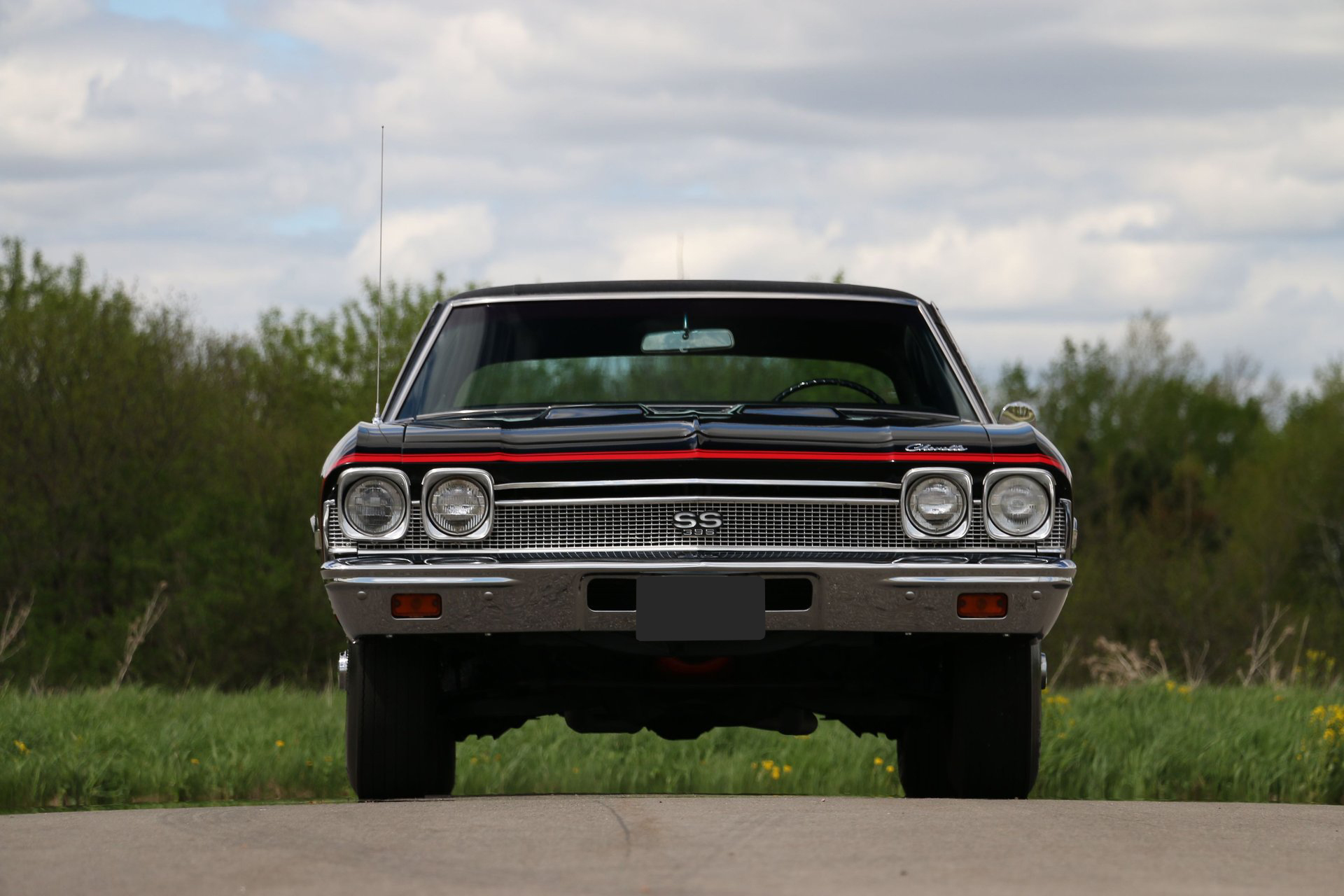 Here is a beautiful black on black 1968 Chevrolet Chevelle Super Sport. Powered by the original numbers matching 325 Horsepower 396 paired to the Muncie M21 4 speed manual transmission. 12 bolt rear end with 3:31 gears. The interior has black bucket seats with center console, aftermarket tachometer with aftermarket gauges and a newer digital stereo.The paint is older but in excellent condition with red stripe that accents the Firestone redline tires well and 14'' GM Rally wheels. The engine runs great and it shifts very smoothly.